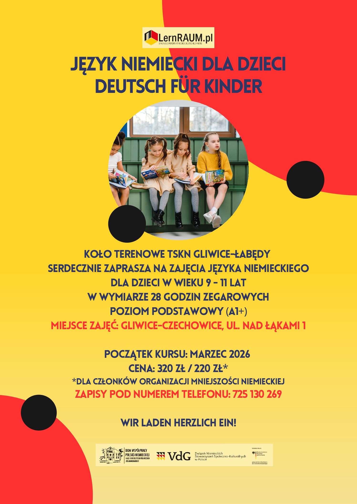 Koło DFK Gliwice Łabędy serdecznie zaprasza na zajęcia języka niemieckiego dla dzieci w wieku 9 – 11 lat w wymiarze 28 godzin zegarowych.