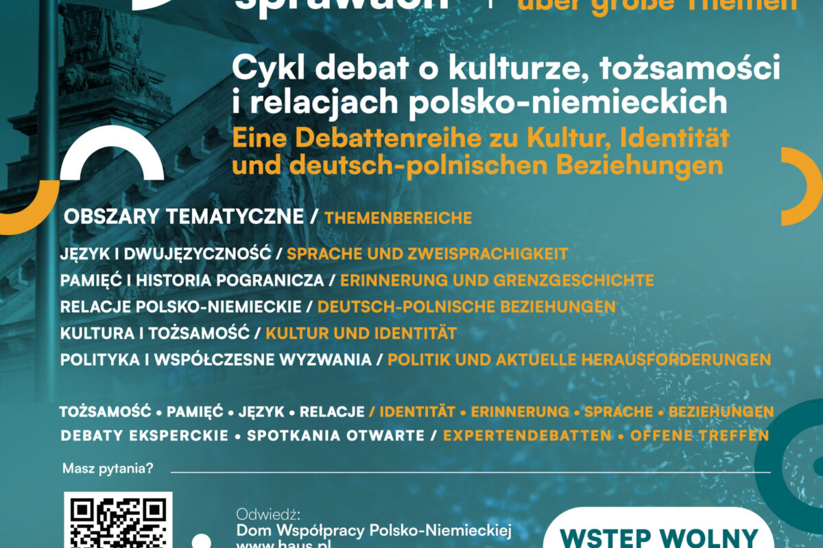 Rozpoczyna się kolejna edycja cyklu debat „Małe rozmowy o wielkich sprawach”, poświęconego tematom istotnym dla środowiska mniejszości niemieckiej w Polsce oraz wszystkim zainteresowanym dialogiem polsko-niemieckim.
