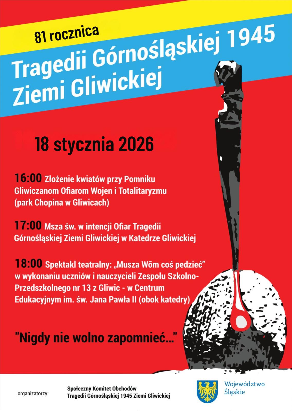 Wir laden Sie herzlich ein, am 25. Januar 2026 an den Feierlichkeiten zum Gedenken an die Opfer der Oberschlesischen Tragödie in Lamsdorf teilzunehmen. Sie beginnen um 15:00 Uhr mit einer Andacht in der Kirche St. Maria Magdalena (ul. Tadeusza Zawadzkiego 32). Anschließend begeben wir uns um 16:15 Uhr zum Friedhof der Arbeitslageropfer in Lamsdor, um dort Kränze niederzulegen. Um 17:00 Uhr laden wir Sie herzlich zu einem Konzert im Zentralmuseum der Kriegsgefangenen in Lamsdorf (ul. Muzealna 4) mit dem Titel „Jesu spes mea – Poesie und Musik, die Trost geben” ein, das von Schülerinnen und Schüler sowie Absolventinnen und Absolventen der Staatlichen Musikschule in Oppeln aufgeführt wird.